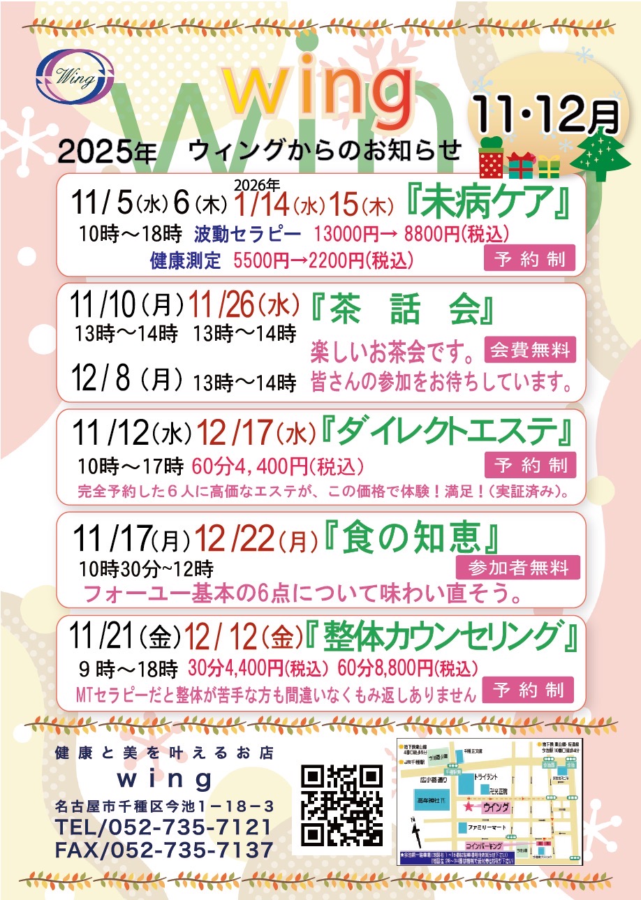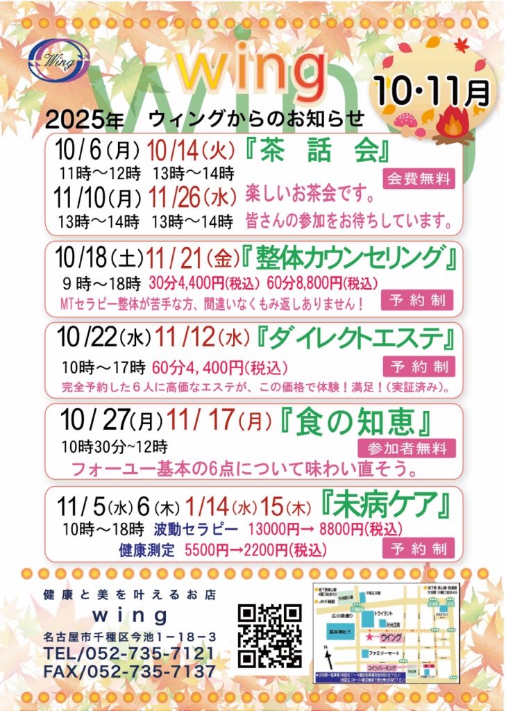 有限会社ウイングの10月11月のイベントです。ぜひご覧ください。