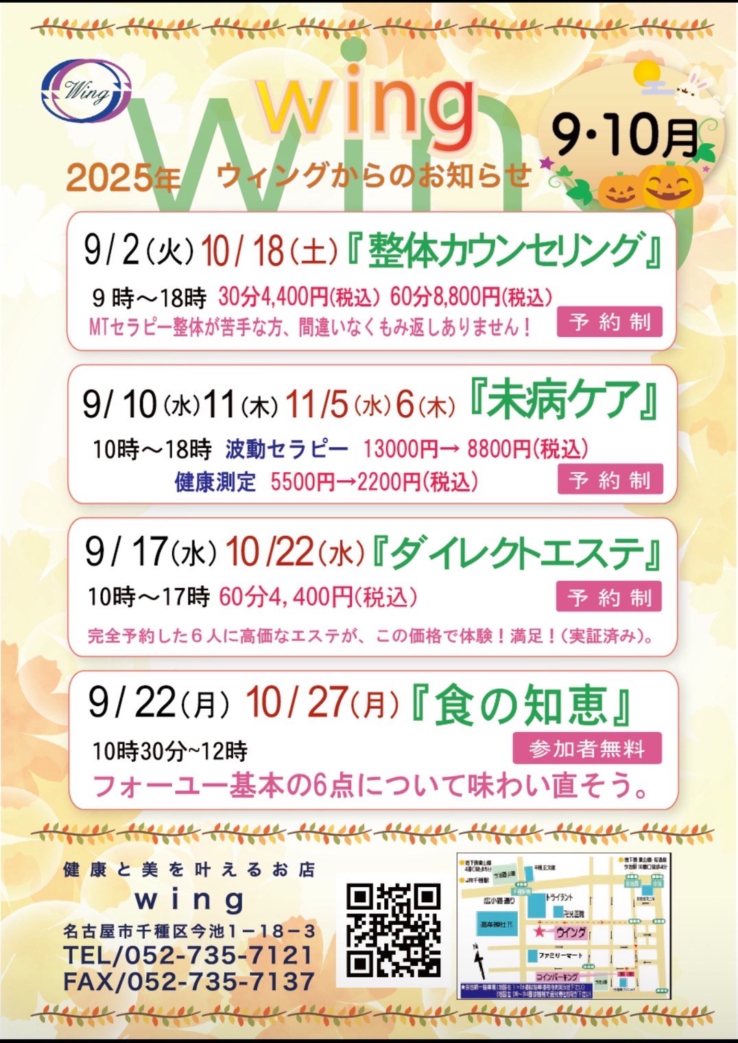 有限会社ウイングの9月10月のイベントです。ぜひご覧ください。